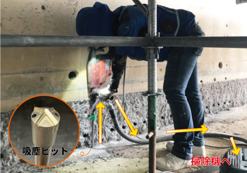 我社では、『吸塵ビット』を使用することを基本として、粉塵を発生させないようにしています。